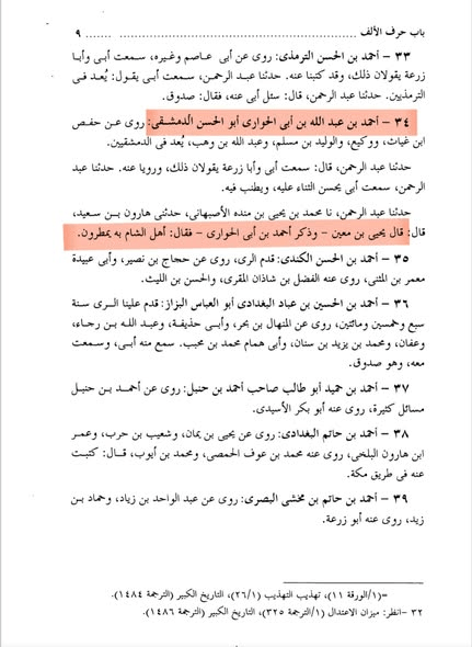 نقل الإمام ابن أبي حاتم الرازي في الجرح والتعديل أن يحي بن معين قال، وقد ذكر أحمد بن أبي الحواري المتوفى سنة 246 هجري: “أهل الشام به يمطرون”. انتهى