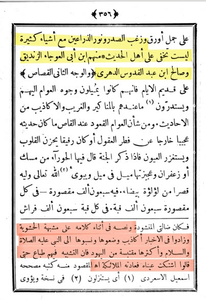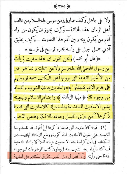 ذكر أبو محمد عبد الله بن مسلم بن قتيبة الكوفي الدِّينَوَرِيُّ المتوفى سنة 276 هـجري في كتابه تأويل مختلف الحديث ان بعض الزنادقة وضعوا ودسوا بعض المرويات المستشنعة كخبر عرق الخيل، وخلق الملائكة من زغب الصدر ونور الذراعين….