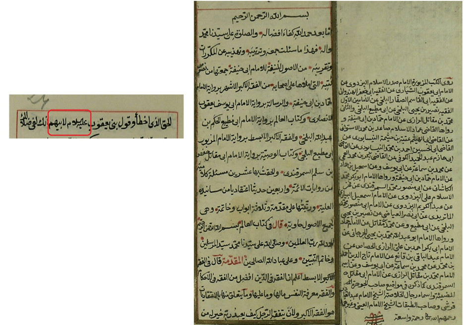 منذ نحو سنة رأيت لواحد من أدعياء العلم منشورًا يذكر فيه أن الإمام أبا حنيفة يقول بنبوة إخوة يوسف بناءً على ما وجده في المطبوع من رسالة الإمام أبي حنيفة إلى عثمان البتي من قوله “بني يعقوب عليه وعليهم السلام”، علمًا أنه وعلى تقدير صحة قوله عليه وعليهم السلام فإن مثل هذا جائز في حق أفراد المسلمين ولا يدل على كونه يعتقد فيهم النبوة، وقد بينت في منشوري وقتها أن بمثل هذا لا يثبت ما ادعاه الغر من نسبة القول بنبوة أخوة يوسف العشرة إلى أبي حنيفة بل هذا يكون عادة من تصرف النساخ، والآن أنقل لتأييد ما قلته صورًا عن مخطوطات في أحدها قوله “عليه السلام” فقط بعد قوله “بني يعقوب” وفي الثانية لا يوجد تسليم بالمرة.. فيعود التسليم في المخطوطة الأولى على يعقوب عليه السلام. انظر تلك المخطوطات في التعليقات.