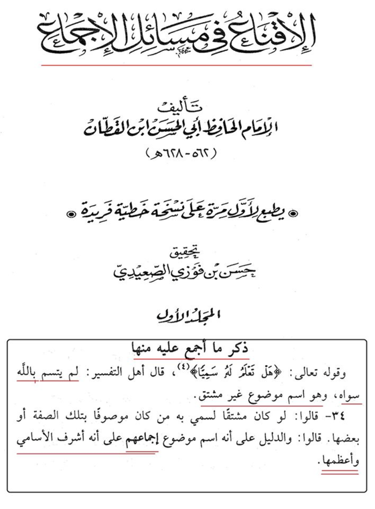 ابن القطان عن لفظ الجلالة إنه اسم موضوع
