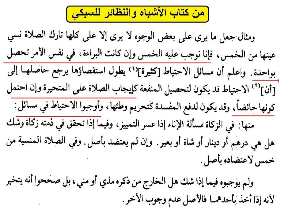 قال العلماء: الأخذ بالاحتياط في بعض المسائل واجب وفي بعضها لا يكون واجبًا، وضربوا لذلك أمثلة عديدة.