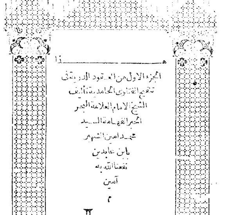 هذه صورة من كتاب “العقود الدرية” للشيخ ابن عابدين الحنفي رحمه الله (صاحب الحاشية المشهورة) يذكر فيه أن الزوج إذا ارتد وانفسخ نكاحه فالمولود بينهما الحاصل من الوطىء بعد انفساخ العقد بسبب الردة يعتبر ولد زنى.