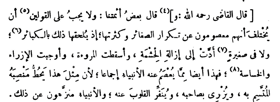 هذا نص مأخوذ من كتاب “الشفا بتعريف حقوق المصطفى” للقاضي عياض ينقل فيه مؤلفه الإجماع على عصمة الأنبياء من المعصية الصغيرة التي فيها خسة ودناوة نفس.