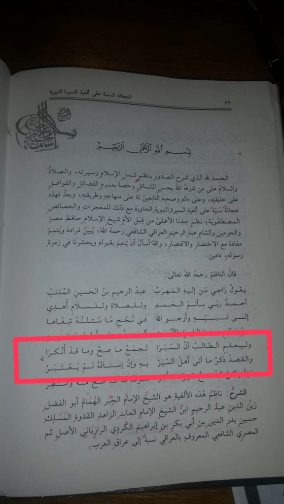 *وَلْيَعْلَمِ الطَّالِبُ أَنَّ السِّيَرَا * تَجْمَعُ مَا صَحَّ وَمَا قَدْ أُنْكِرَا*