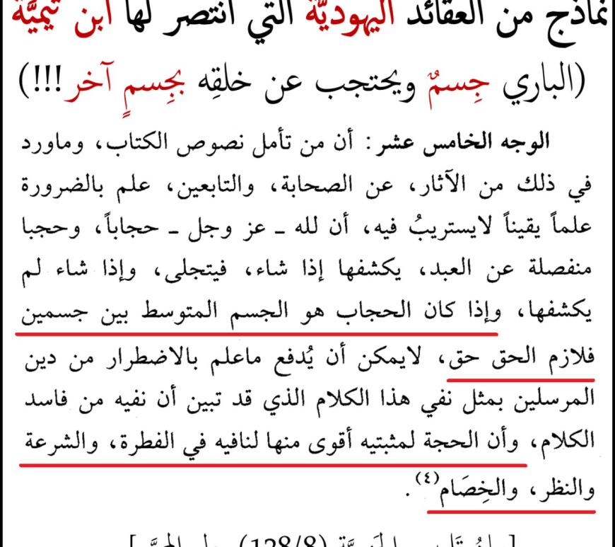 نماذج مِن العقائد اليهوديَّة التجسيمية الَّتي انتصر لها ابن تَيميَّة مجسم عقيدة ابن تيمية