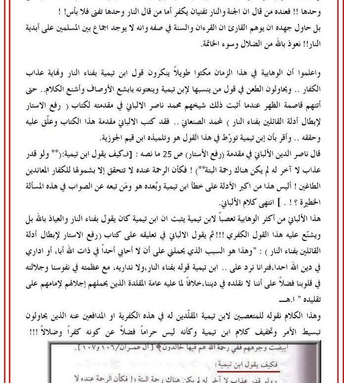 ذكر ابو حيان النحوي الأندلسي في تفسيره المسمى (النهر) في قوله تعالى: “وسع كرسيه السماوات والأرض” ما نصه : قد قرأت في كتاب لأحمد بن تيمية هذا الذي عاصرناه، وهو بخطه سماه كتاب العرش : “إن الله يجلس على الكرسي، وقد أخلى مكانا يقعد معه فيه رسول الله صلى الله عليه وسلم” . وفي الكتاب المسمى موافقة صريح المعقول لصحيح المنقول لابن تيمية (ج2/ص29) يقول … متابعة قراءة يقول الوهابية ان الله جالس على العرش